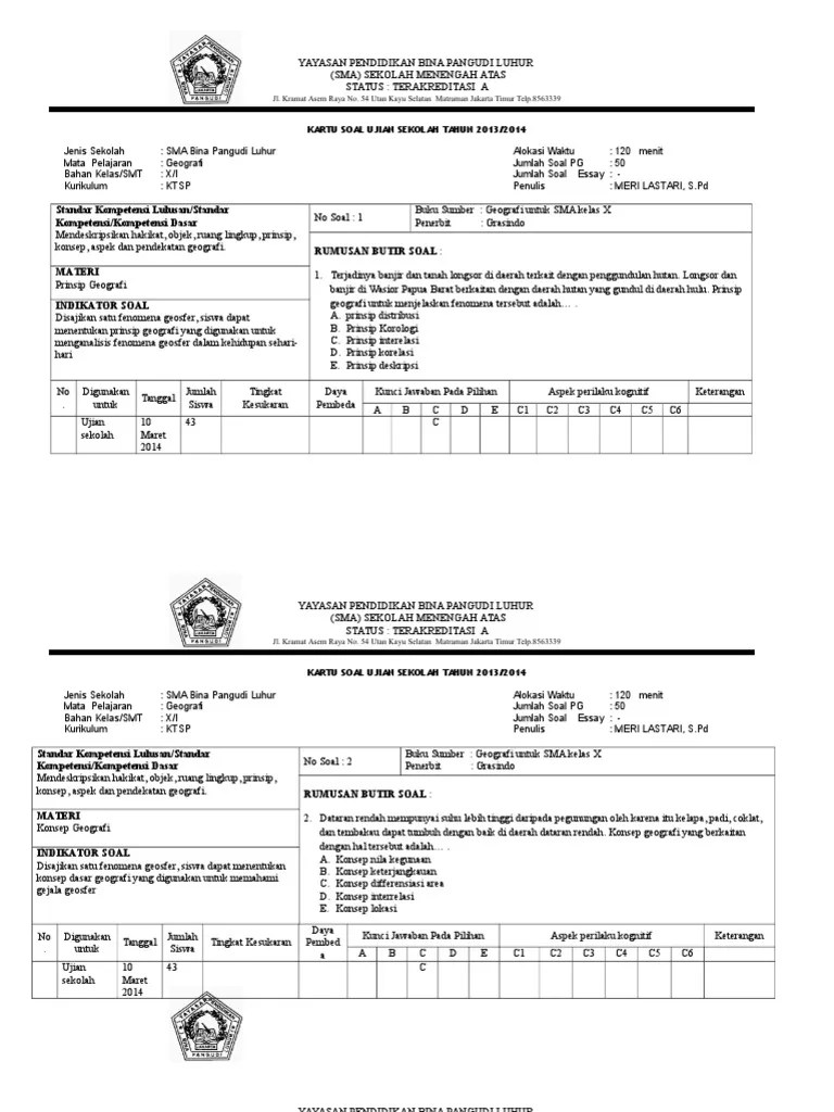 Contoh soal geografi kelas 10 semester 1 dan semester 2 ini berupa soal pilihan ganda dan essay semua bab 1, 2, 3, 4, 5, 6, 7 dst beserta .